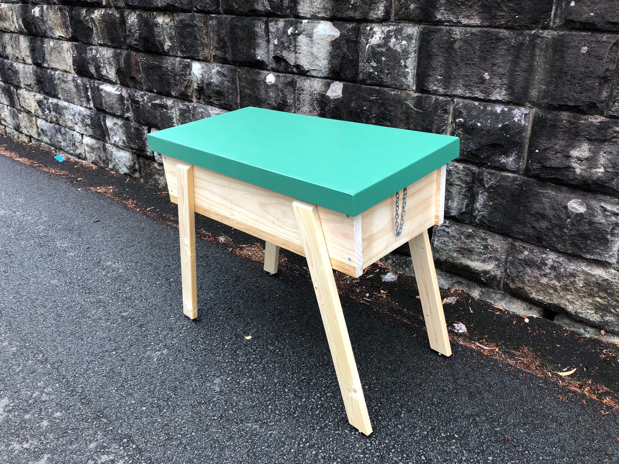 I occasionally have hives made predominantly with recycled timber. This is often repurposed bookshelves or tables with 30 – 40mm-thick timber. They are potentially more durable. They are much heavier, so are only available for local pickup. Let me know if you are interested in this option.