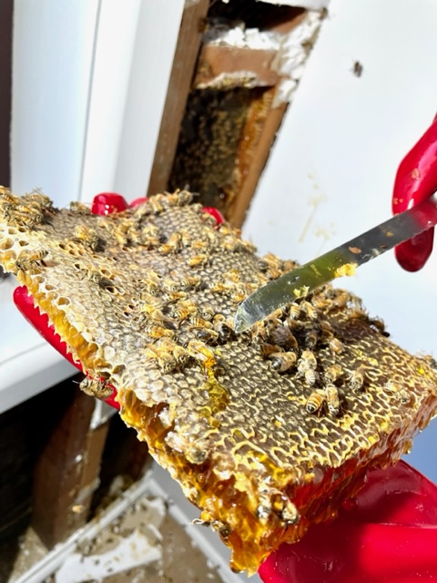 Batch 31: Harvested from a wild hive living in a wall cavity in Dee Why. They came in through a crack at the window frame. They made over 15kg of honey between November 2022 and June 2023. At least 10,000 bees lived here, now relocated to Neutral Bay: