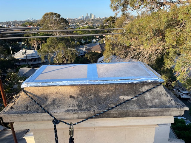 This job below was in Glebe. A roofer has capped the chimney pots, but left a crack where the bees could easily enter. I relocated to bees to my apiary, removed all honeycombs, and sealed the entire top of the chimney: