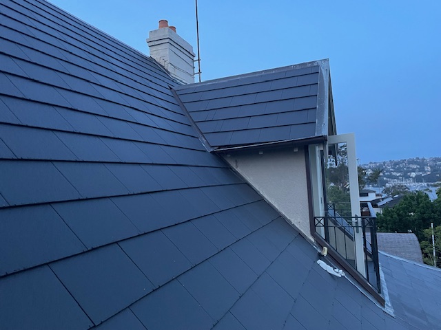 This job was in Balmain. Again, the chimney had been capped, but a corner of the cement-board snapped-off, leaving a hole for the bees to enter. I replaced the old cement with ceramic tiles (far more durable than cement-board) and sealed all the edges with flexible butyl-rubber flashing.
